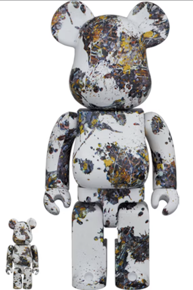 A 400% & 100% Bearbrick set inspired by Jackson Pollock’s iconic drip painting style, titled Studio (Splash).
