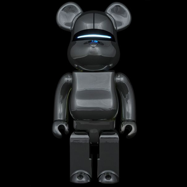 This is the 400% Bearbrick - Hajime Sorayama Robot (Blue Lights ed.) by Medicom Toy
