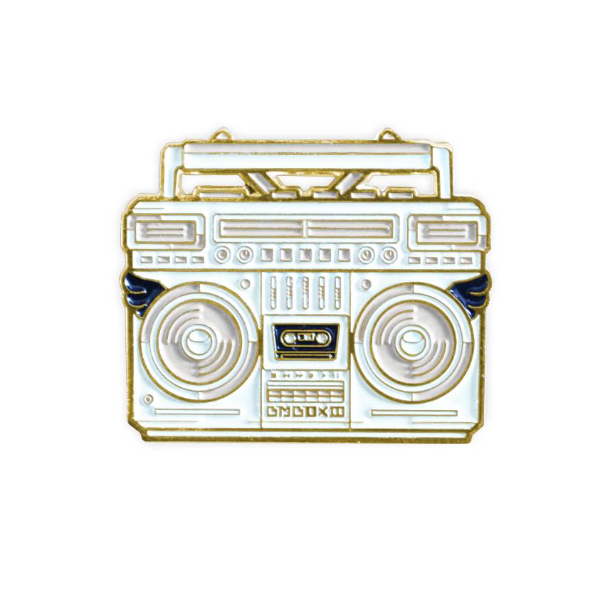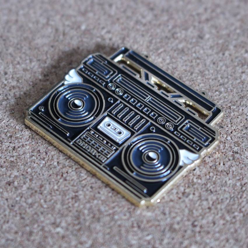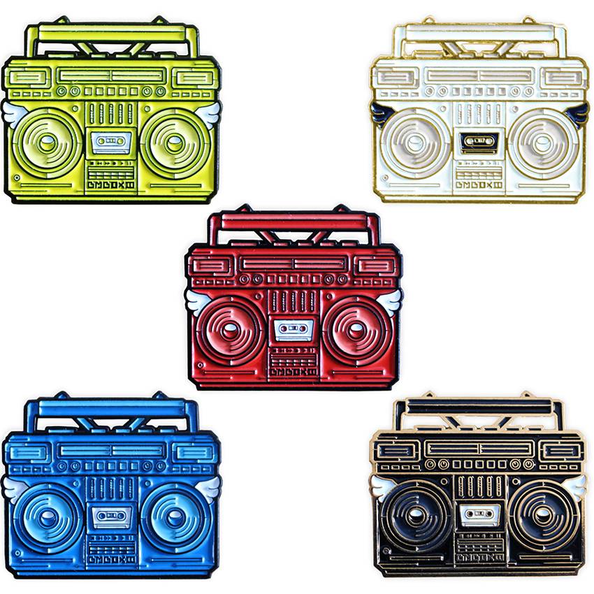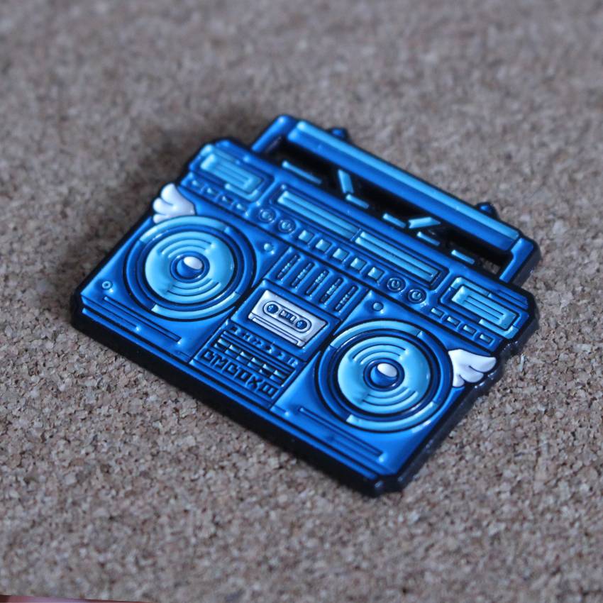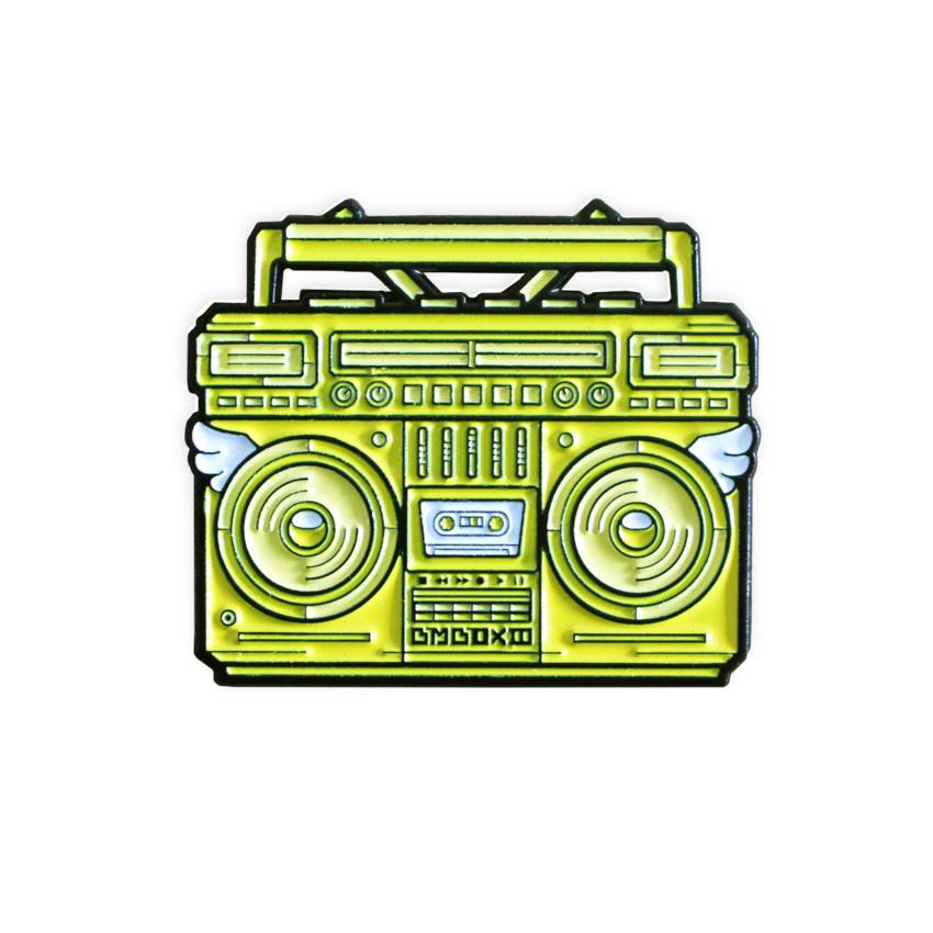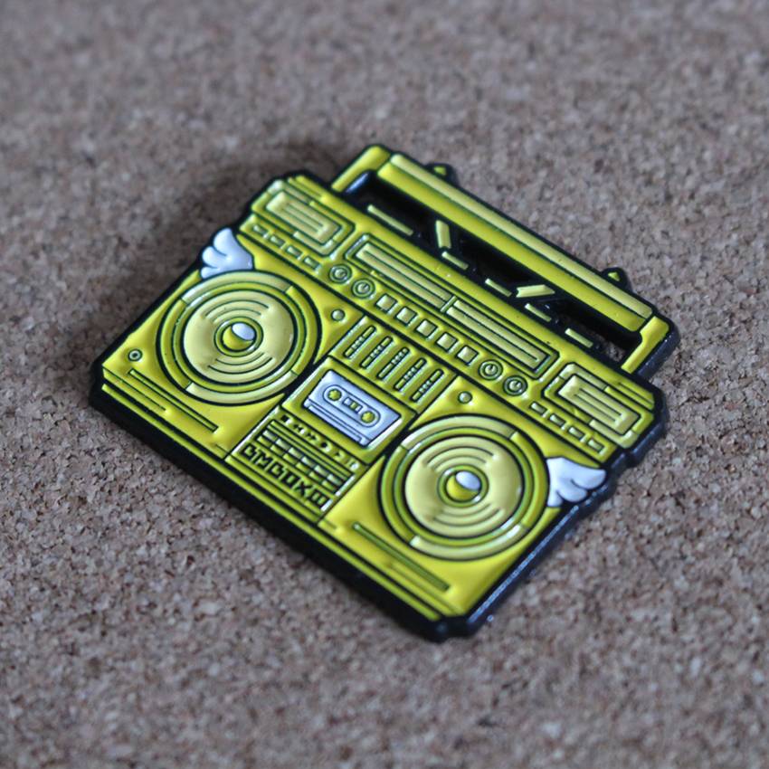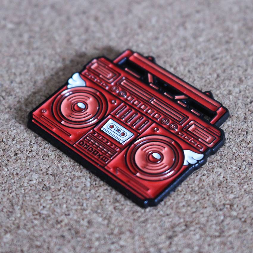 The BMBOX pin is a Soft Enamel pin sized 1.50" x 1.25" (38 x 31 mm) and comes with a Black Rubber backer, designed by Elena Kazi & produced by Creamlab.