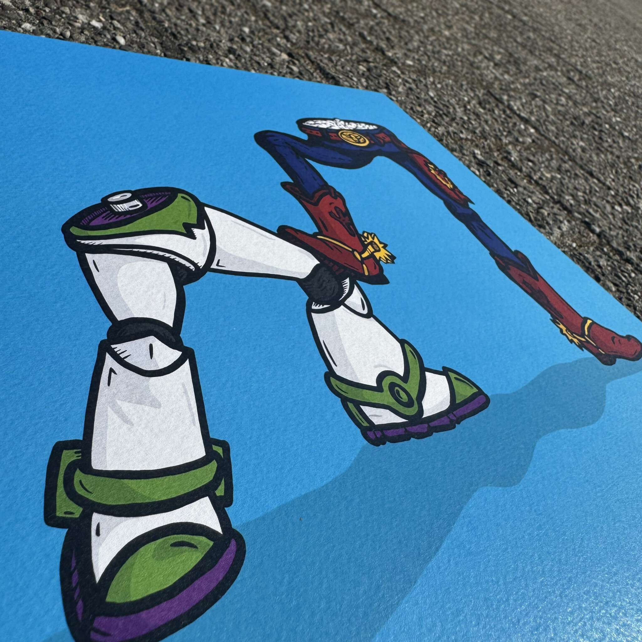Great Pals is part of the "Famous Pants" series—Kloes’ ode to iconic duos, told from the hips down. In this piece, it’s just the bottom halves of two very familiar space-and-co