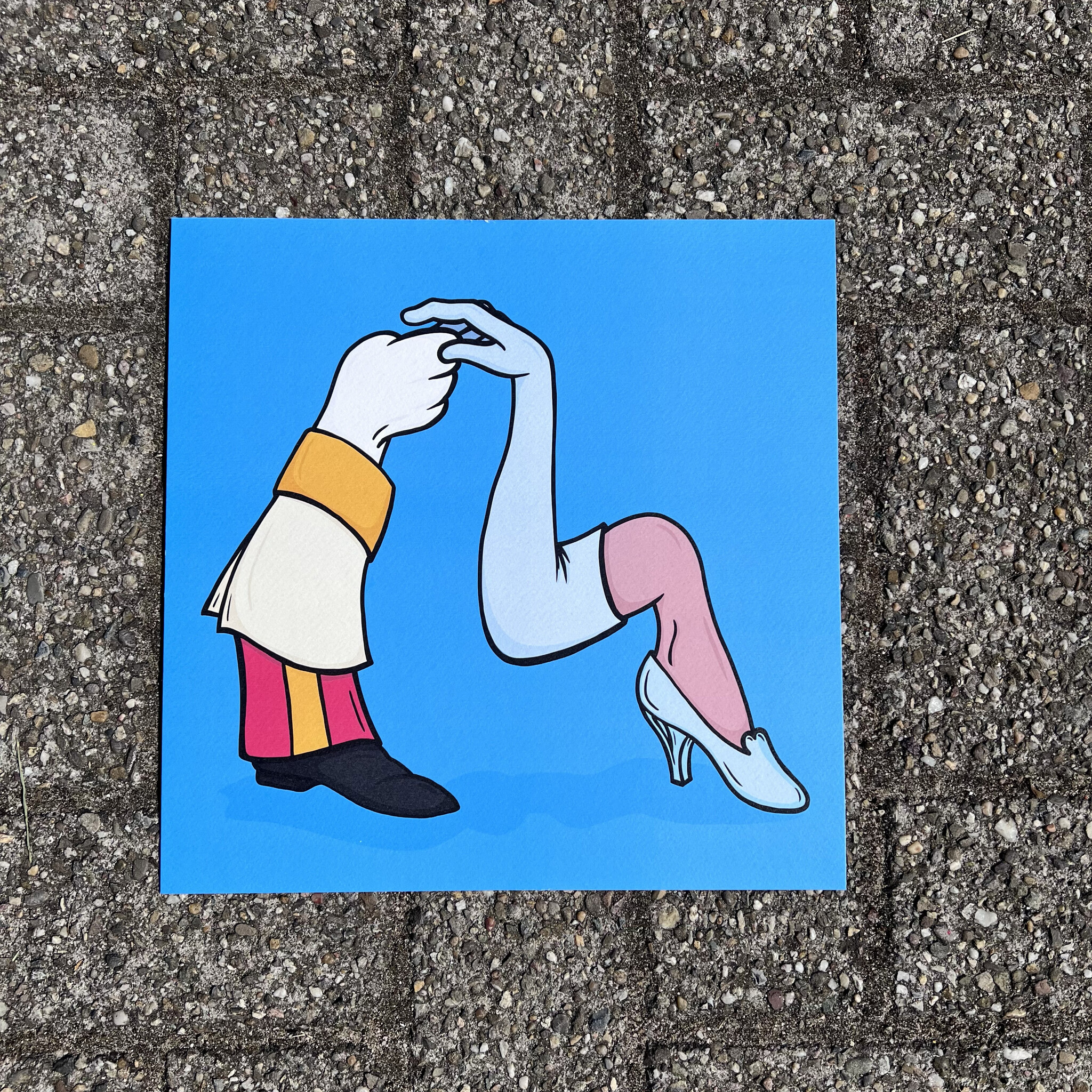 May I? is a soft and surreal nod to a classic tale, and part of the "Reconstructed Toons" series. In this piece, there are no faces, no gowns, no ballroom—just two shoes, side by s