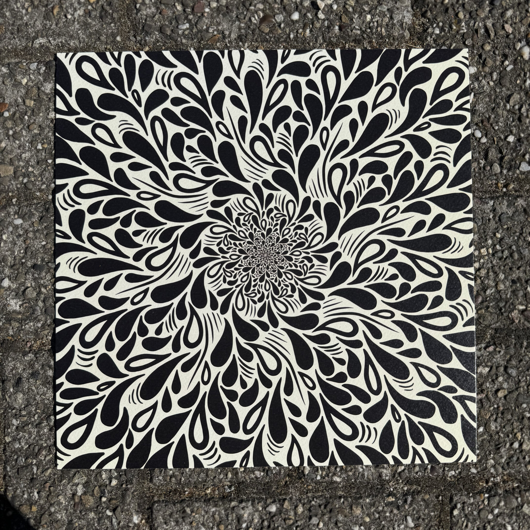 Reva is a quiet piece with a lot to say. It’s a mandala, but not the kind you’d find in a textbook or a yoga studio—this one twists, folds, and spins in its own rhythm. Symmetry give